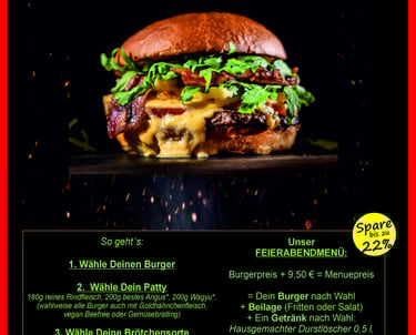 Sichern Sie sich einen Tisch für unsere exklusiven Burger und Getränke-Highlights. Wir freuen uns auf Sie!