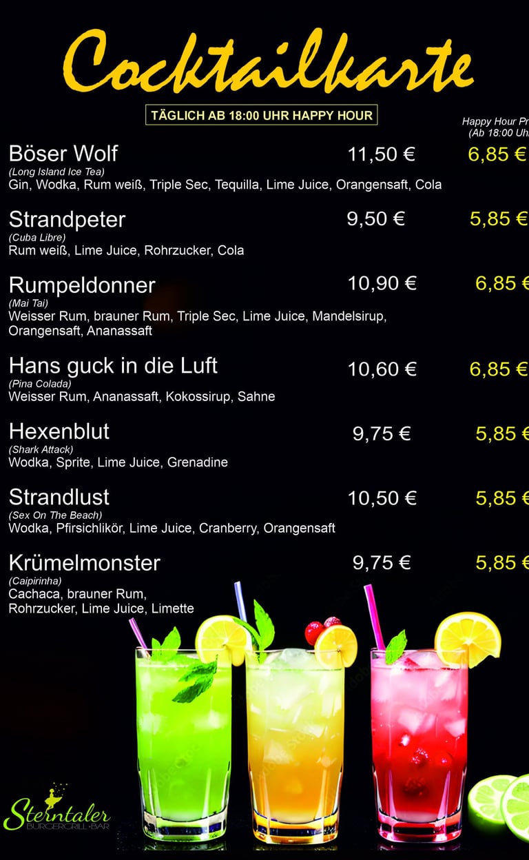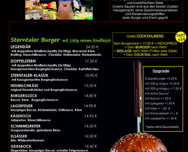 Premium Burger, hausgemachte Saucen und Cocktails.
